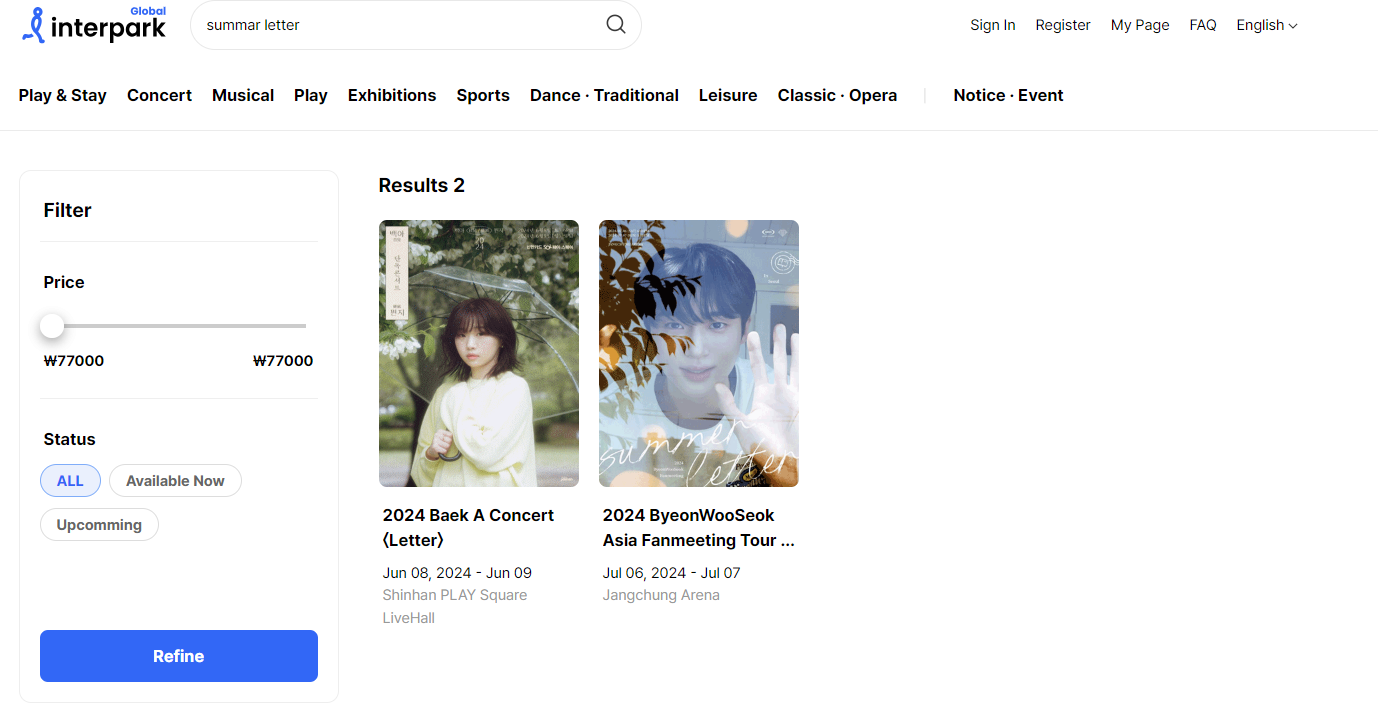 인터파크 티켓을 통해