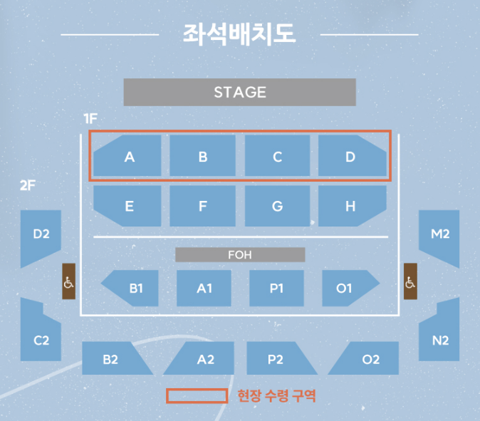 공연시작 2시간 전부터 현장 수령 가능해요