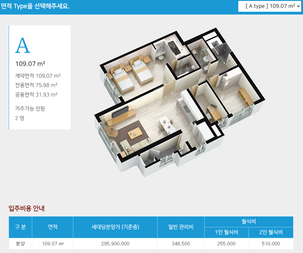 세대 내 난방비, 급탕비, 전기료, TV수신료는 별도이며 관리비는 변동될 수 있습니다.