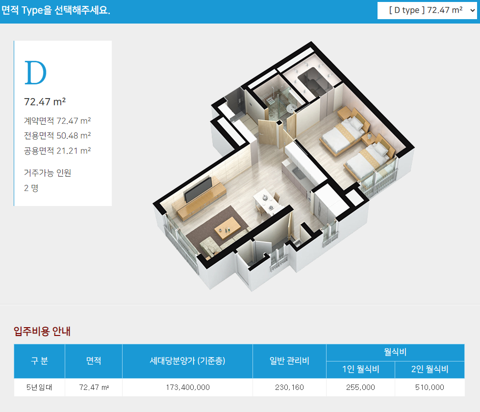 기타 부대시설 외에 개인 공간은 면적별로