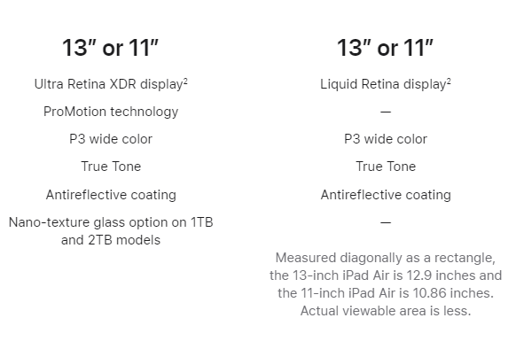 이번에 아이패드 프로는 11인치와 13인치 두 가지 크기의 모델로
