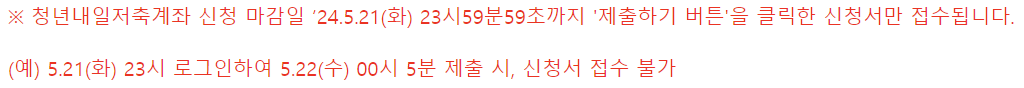 2024년 청년내일저축계좌의 가입 신청 기간이