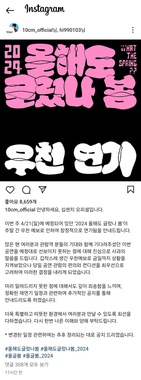 '2024 올해도 글렀나 봄'이 이번주 4월 21일 일요일에 예정되어 있었는데 우천예보가 있어 연기되었네요ㅜㅜ