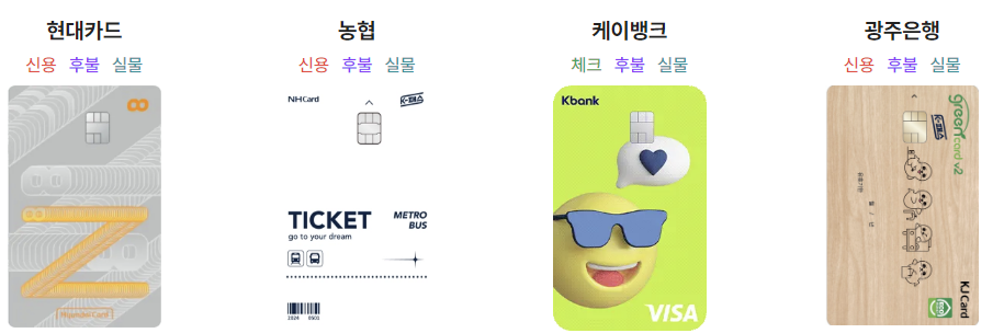 하나카드, bc바로카드, ibk기업은행카드, 현대카드, 광주은행카드의 경우