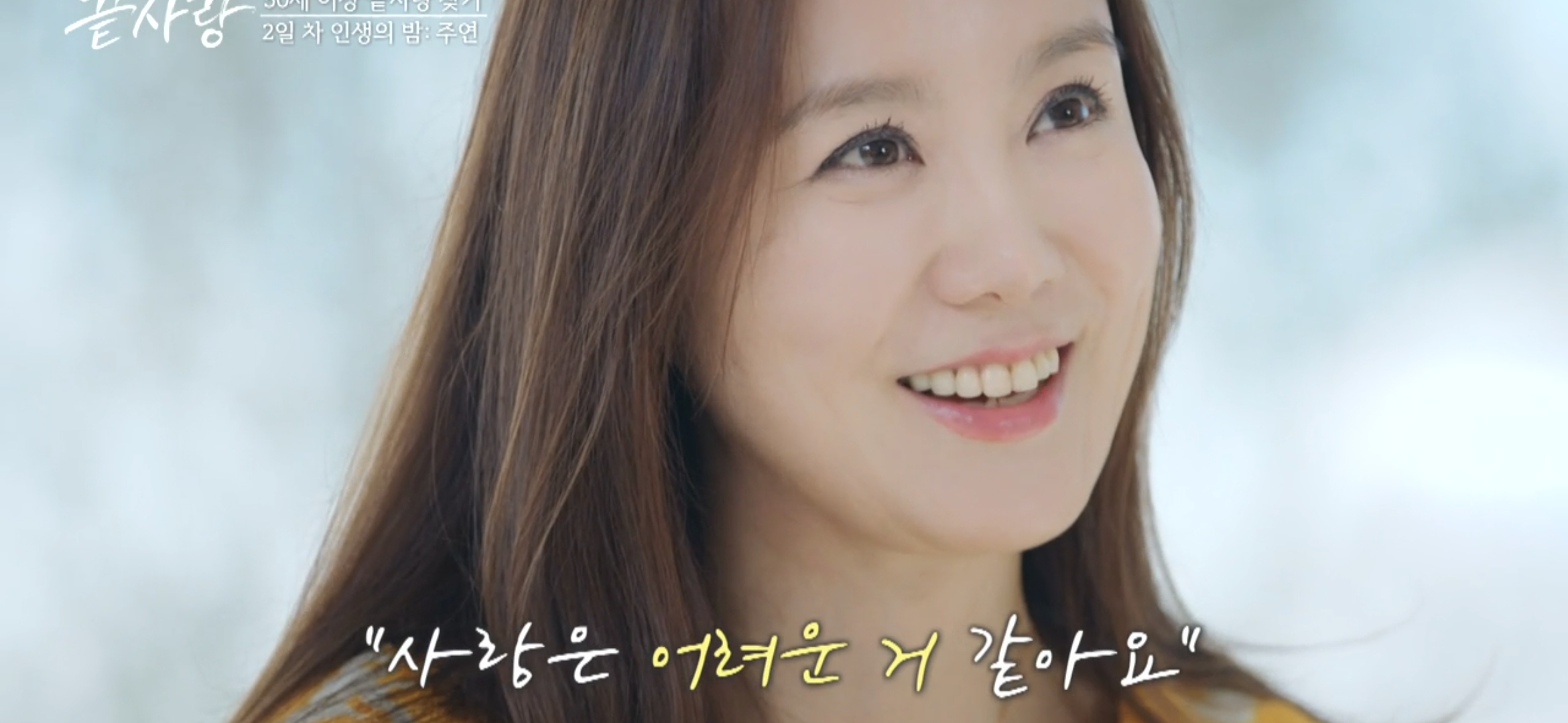 JTBC의 새로운 중년 리얼 연애 프로그램 끝사랑. 50대에서 60대까지의 참가자들이 출연하는 이 프로그램은 , 청춘의 열정과는 또 다른 성숙한 사랑의 모습을 진솔하게 담아냅니다. 지금껏 보지 못