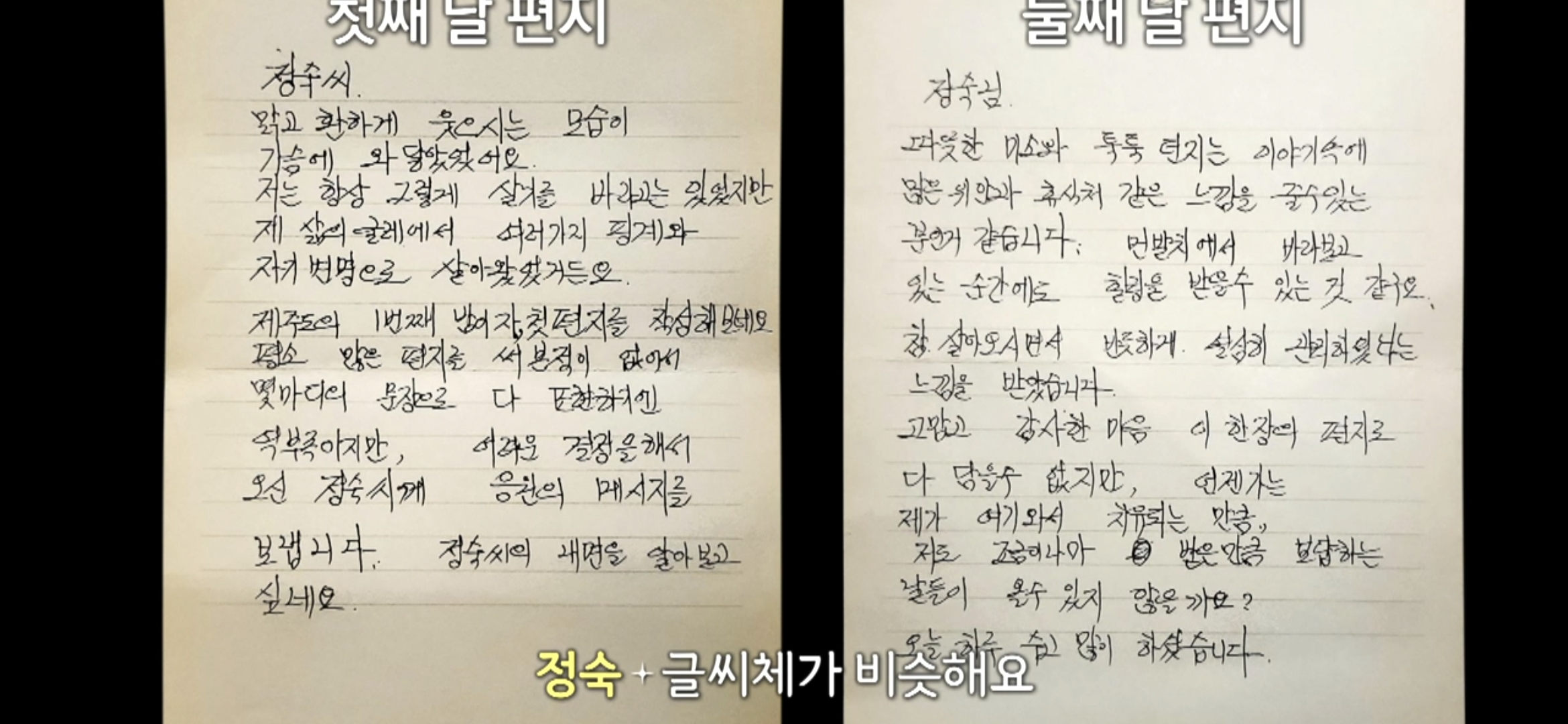 첫째날과 돌째날의 편지의 필체를 비교해보니 같은 사람같았어요.