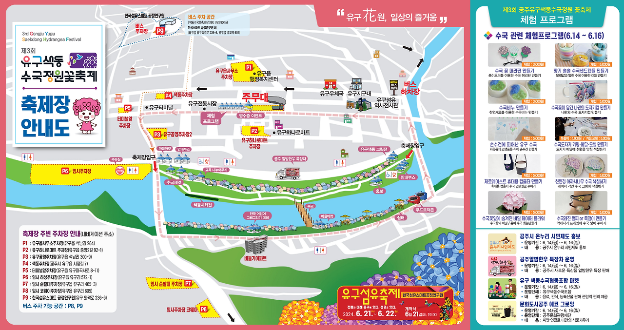 6월 14일부터 16일까지 3일간 열리는 유구 색동수국정원 축제입니다.